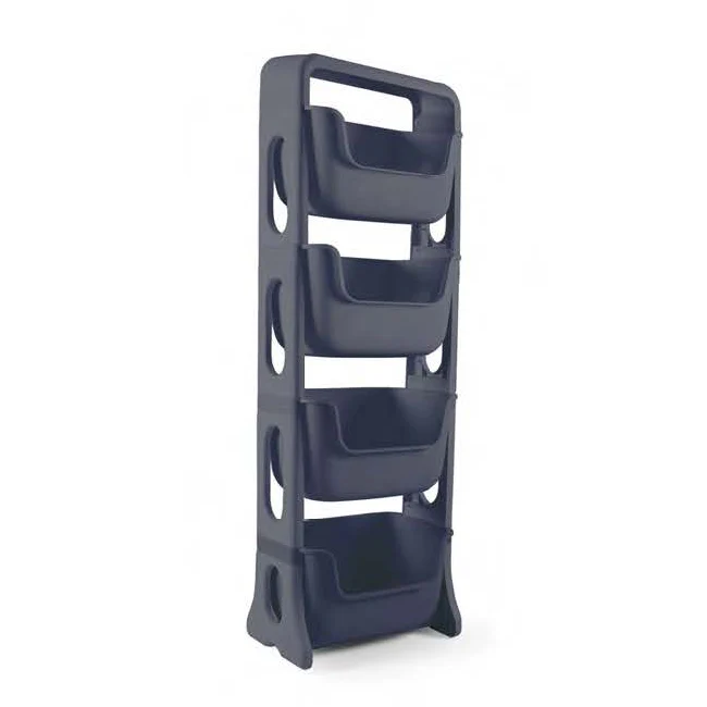 Estante Organizador de 4 Niveles en color Negro de Armaty. Fabricado en plástico resistente, con opción de ruedas para facilitar su movilidad.