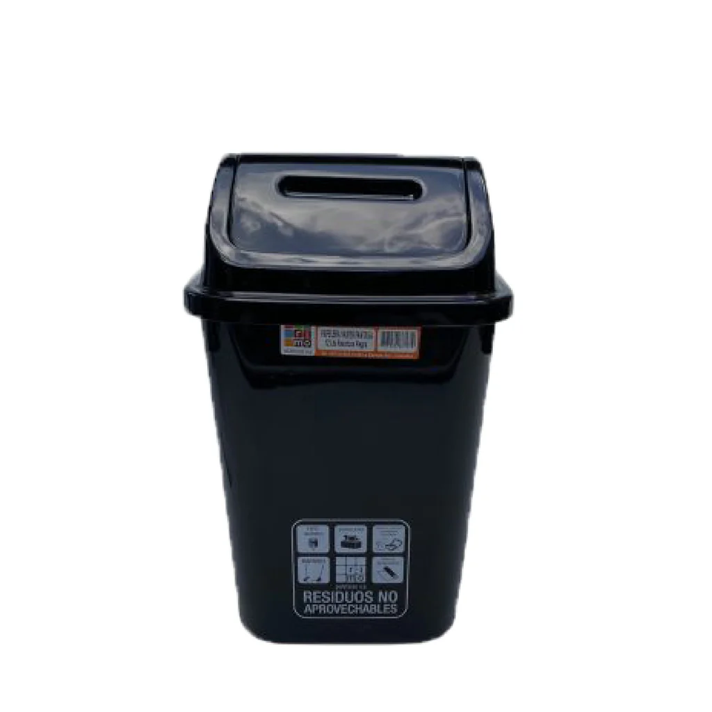 Diseño funcional: La tapa vaivén facilita el desecho de residuos sin necesidad de levantar la tapa manualmente, promoviendo la higiene.